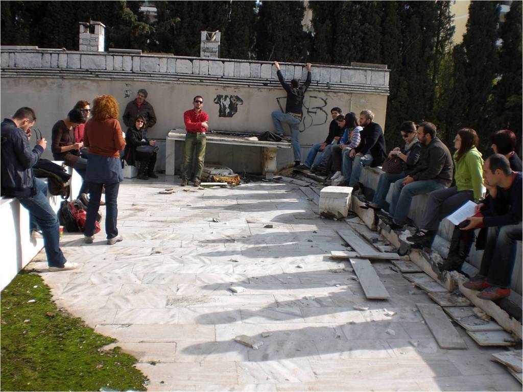 The Filopappou Group is an open art collective that operates in a non-hierarchical, self-organized way. Its projects arise from the collaborative efforts of a number of self-directed individuals who work together on a non-profit basis. The group acts consciously according to decisions taken in open discussions where there is no leader, nor centralized organization and no official or permanent members. The participants do not take up any particular role or any given agenda. Every new idea or proposal stimulates new initiatives and reasoning that are not a priori consensual. The coexistence of those involved does not form a community but rather a kind of network whose members flow through its routes and hubs. Any potentially contradicting positions and intents do not hinder the making of various actions or projects. On the contrary, contradictions and differences are very much welcomed, as they provide raw material for the group’s practice.