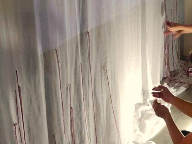 Εγκατάσταση με φυσικά υλικά, χώμα, κλαδιά, οικοδομικά υλικά.
