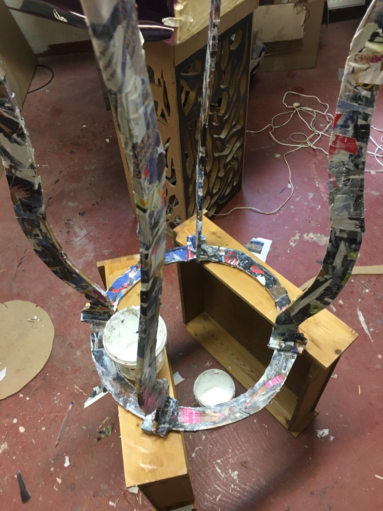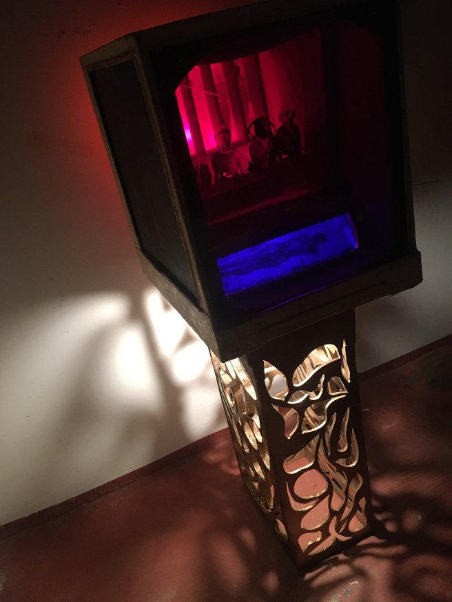 Υλικό: Styrofoam – Κόλλα – Θαλάσσιοι χάρτες πολεμικού Ναυτικού – Ακρυλικά –Led- Φουλάρι.