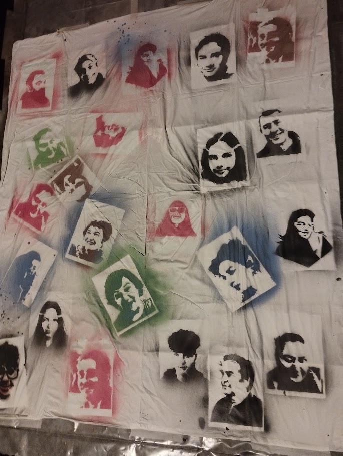 Όταν θέτεις το ερώτημα με ποιους ζω, αρχίζεις να κοιτάζεις τους ανθρώπους που είναι γύρω σου. Με αυτή την σκέψη πρότεινα ένα εργαστήριο στένσιλ, δημιουργώντας τα πρόσωπα των ανθρώπων που θα συμμετέχουν σε αυτό. Το στένσιλ είναι μια τεχνική την οποία χρησιμοποιούν οι καλλιτέχνες της street art για να κάνουν γρήγορα έργα σε πολλαπλά αντίγραφα.
