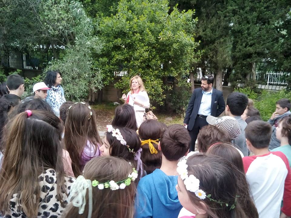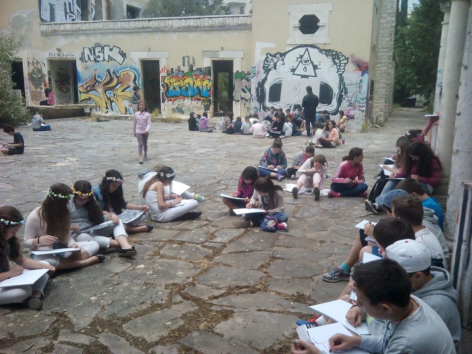 Τα παιδιά ξεναγήθηκαν στους εξωτερικούς και εσωτερικούς χώρους από τη μητέρα του σχολείου μας κ. Ρένα Μακρή, έμαθαν την ιστορία της βίλας, παρατήρησαν, φαντάστηκαν και ….απέδωσαν με κάρβουνο τις ιδέες τους με την καθοδήγηση του εκπαιδευτικού των εικαστικών Φοίβου Σοφικίτη ενώ στην κεντρική αίθουσα καλλιτεχνών, ομάδα κοριτσιών απέδωσε εξαιρετικά χορευτικό δρώμενο αφιέρωμα στον Αλέξανδρο Ιόλα, μια ιδέα της γυμνάστριάς μας Βαγγελιώς Τουραπή η οποία δίδαξε και τη χορογραφία.