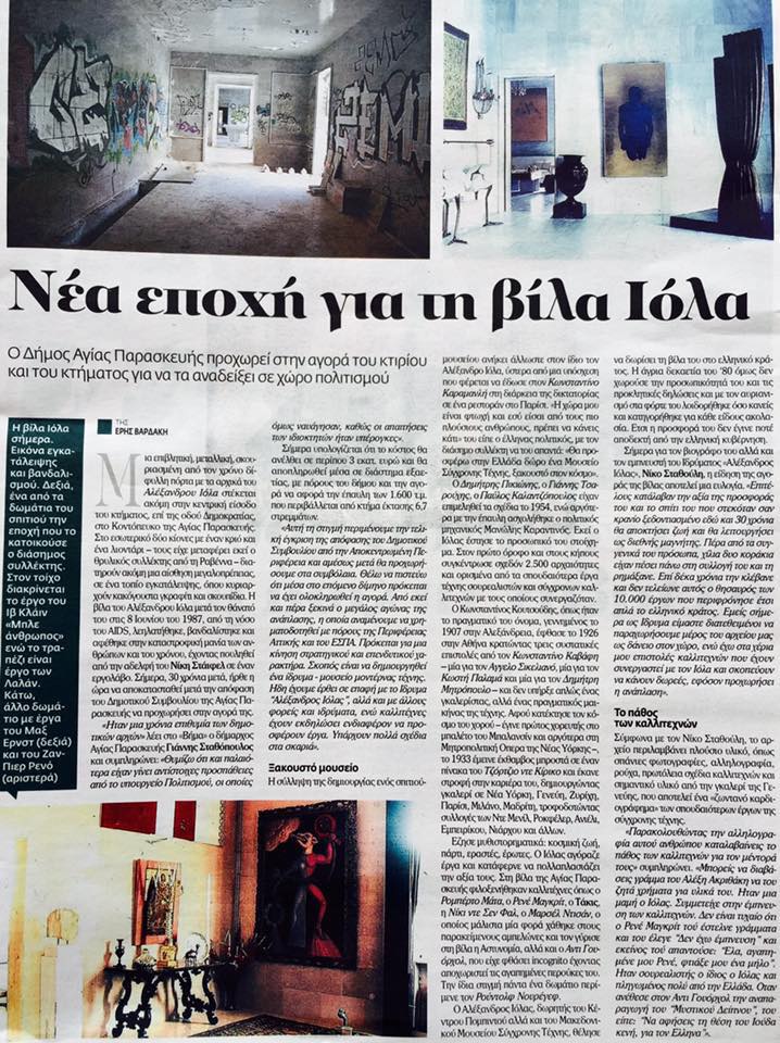 Είχα την τύχη και τιμή να υπογράψω τα συμβόλαια απόκτησης-αγοράς από τον Δήμο Αγιας Παρασκευης του κτήματος (6.700 τμ) και της βίλας (1700τμ) ΙΟΛΑ.