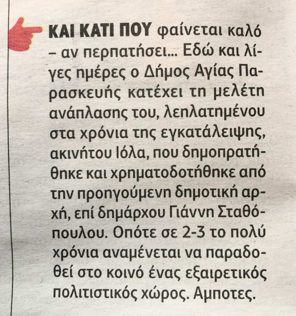 αρχείο τεκμηρίων για την διαχρονική σχέση μεταξύ βίλας Ιόλα και τοπικής κοινότητας Κοντοπεύκου-Παραδείσου