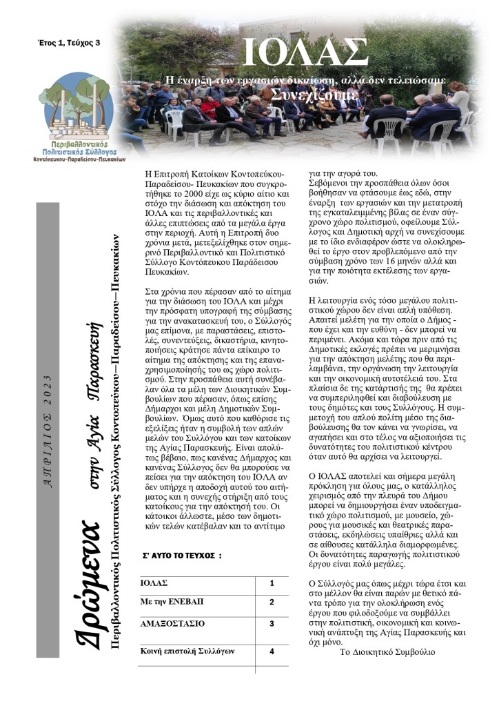 αρχείο τεκμηρίων για την διαχρονική σχέση μεταξύ βίλας Ιόλα και τοπικής κοινότητας Κοντοπεύκου-Παραδείσου